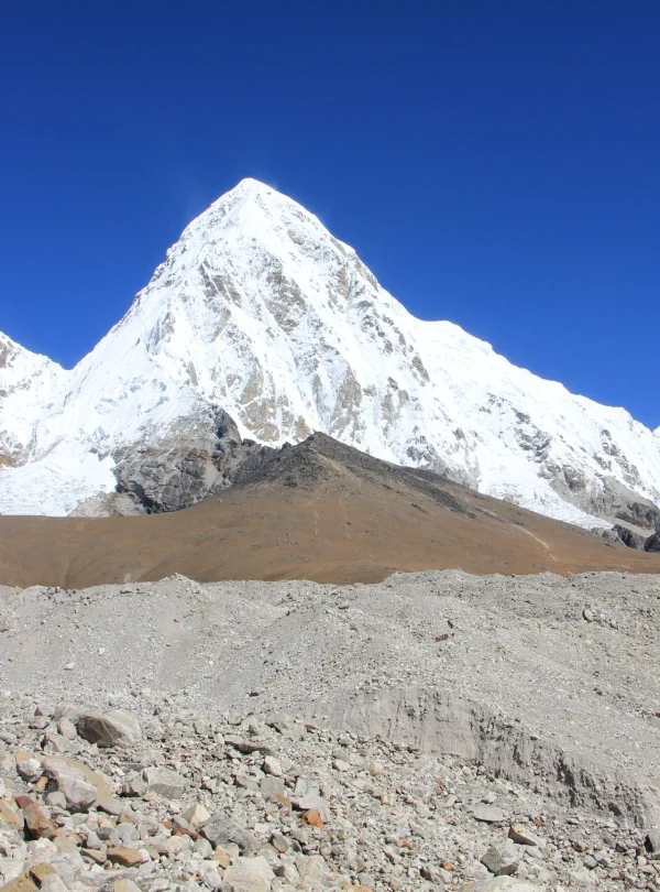 We have two hours left on our trek to get to Everest base camp after lunch in Gorakshep. Once you're there, you may finally celebrate, snap multiple photos, or just enjoy the scenery. As soon as you fulfill your wish to stay, we will head back to Gorakshep for the overnight stay.