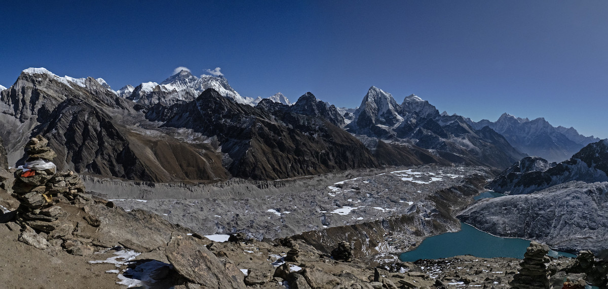 We will wake up a bit earlier than usual today to enjoy the sunlight from the summit of Gokyo Ri. Observing many 8,000-ers, including Everest, Makalu, Cho Oyu, and Lhotse, from this incredible viewing spot is just amazing.