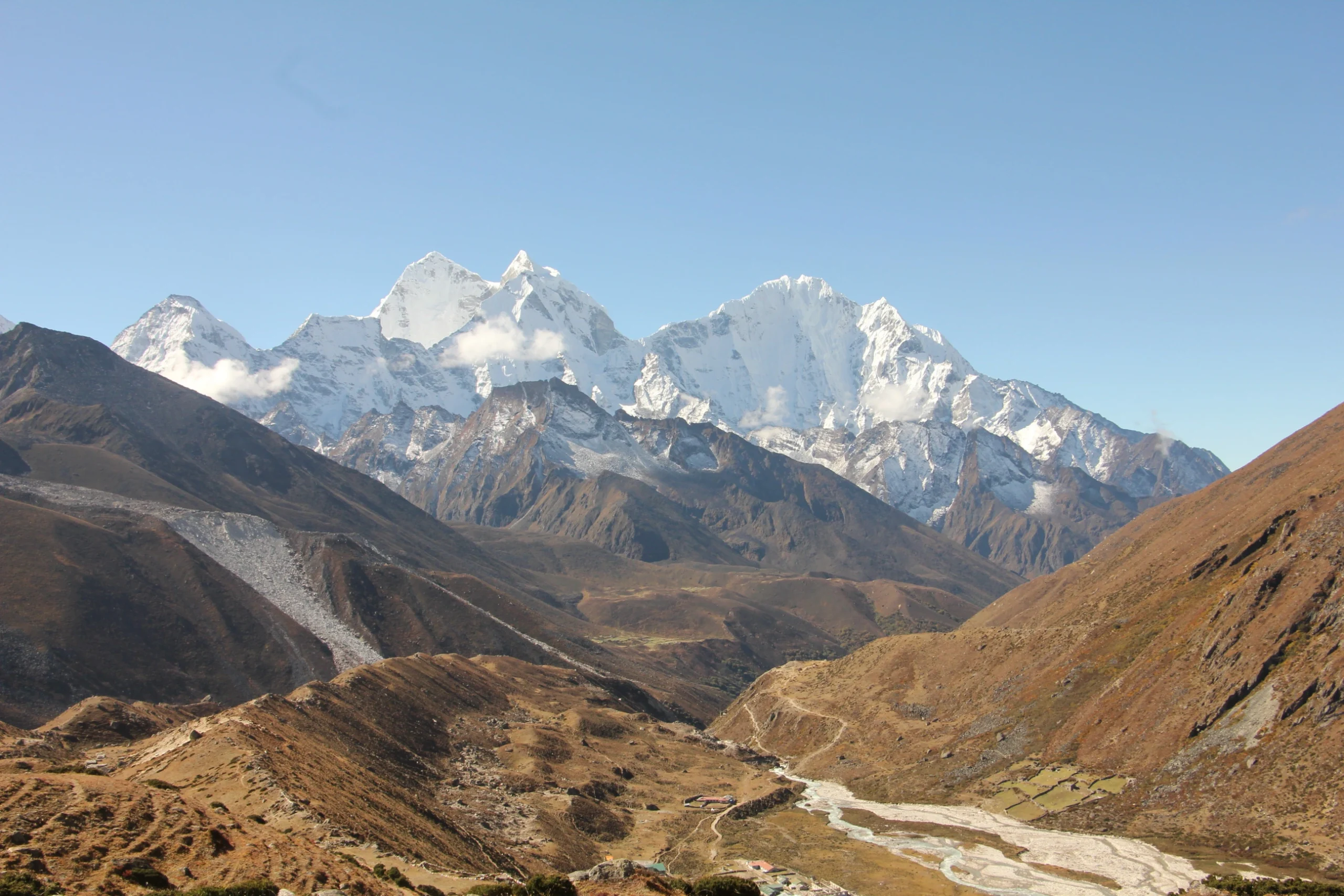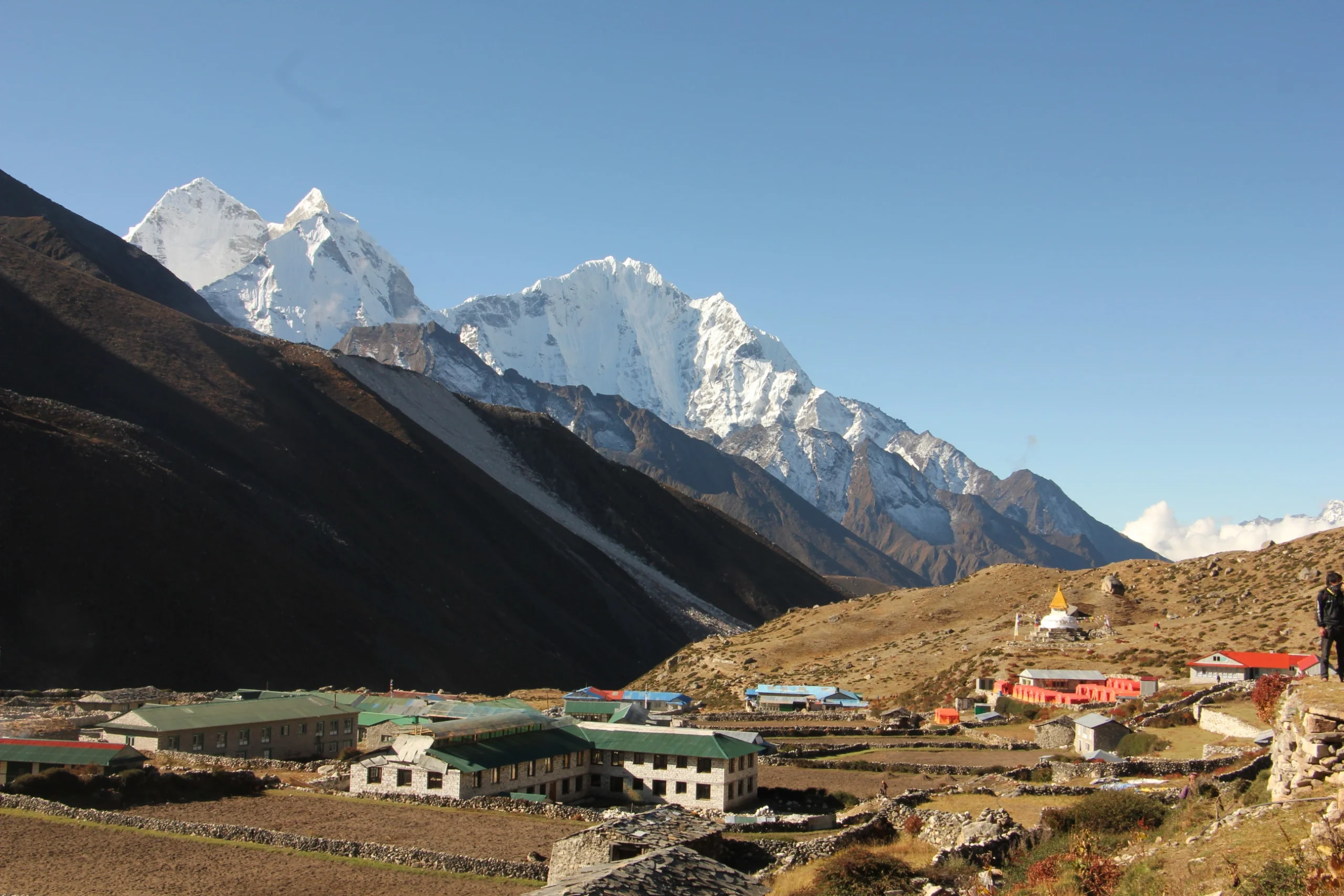 Our journey starts today with a short walk that takes us through a beautiful rhododendron forest, leading to the settlement of Pangboche. Our trial goes via numerous Chortens, characteristic villages, and Mani walls. We arrive at the village of Orsho—the route that divides the journey to Pheriche and Dingboche—after crossing the Imja Khola and traversing the bridges.