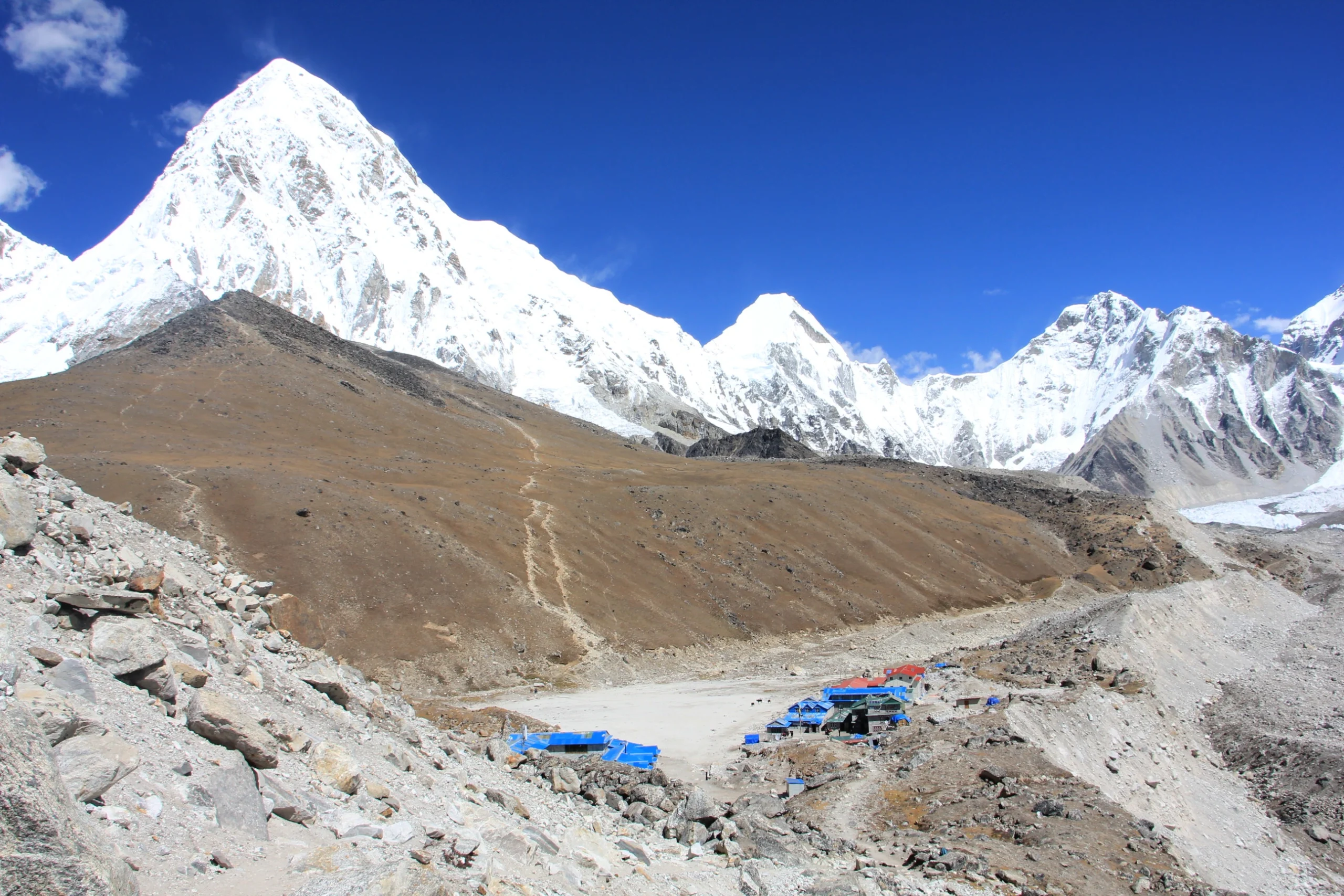 We start our day in Lobuche with breakfast. We hike down a route beside the Khumbu glacier from Lobuche. Along the route, we are treated to the beautiful scenery of Nuptse, Pumori, Ama Dablam, and more.